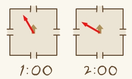 部屋は四角いから、1時ではまだ同じ壁を指しているけど、